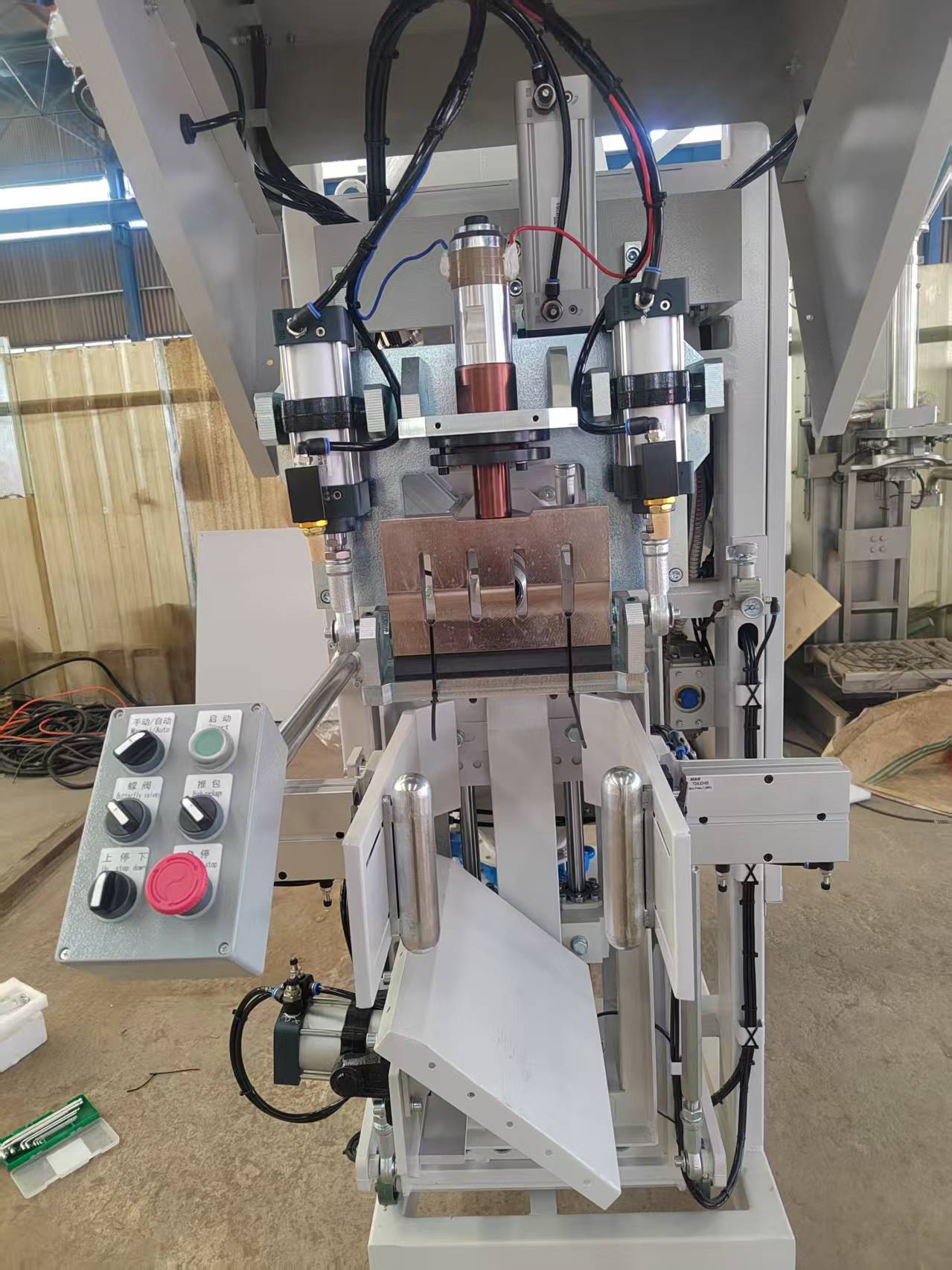 ΈναΣυμπλήρωμα τσάντας βαλβίδας αέρα με υπερηχητική σφραγίδαείναι ένα εξειδικευμένο μηχάνημα συσκευασίας που χρησιμοποιείται κυρίως σε βιομηχανίες που ασχολούνται μευλικά σε σκόνη ή κόκκουςΗ μηχανή αυτή ενσωματώνει δύο τεχνολογίες: